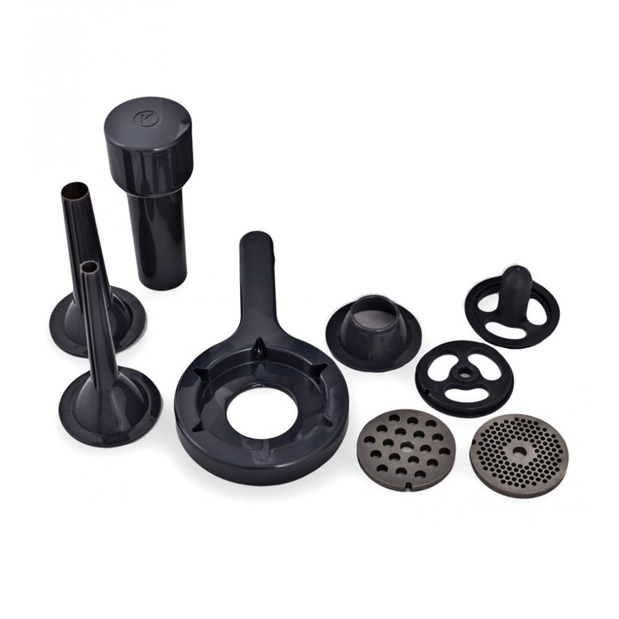 Стильне дизайнерське оформлення корпусу електричної мясорубки Kenwood MG700 в поєднанні з сучасним кольором нержавіючої сталі дозволять створити на вашій кухні атмосферу затишку, комфорту і практичності, а споживаною потужності в 800 Вт буде цілком достатньо для високої продуктивності, дозволяючи приготувати за одну хвилину 3 кг свіжого фаршу. Надійну і безвідмовну роботу мясорубки Kenwood MG700 забезпечує універсальна функція «Реверс», що дозволяє дуже легко і просто впоратися з жилами, що намоталися на металевий шнек . Три перфорованих диска для фаршу різної фракції помелу, дві спеціальні насадки для домашньої ковбаси та насадка «кеббе» дозволять готувати найрізноманітніший фарш, як з мяса, так і з риби, а металевий лоток в комбінації зі штовхачем створить додаткову зручність і безпеку в процесі подачі мяса на шнек. ... розгорнути