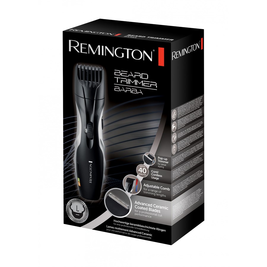 Тример Remington Barba, для бороди та вусів, акум., насадок-9, 40хв. Використання, сталь, чорний