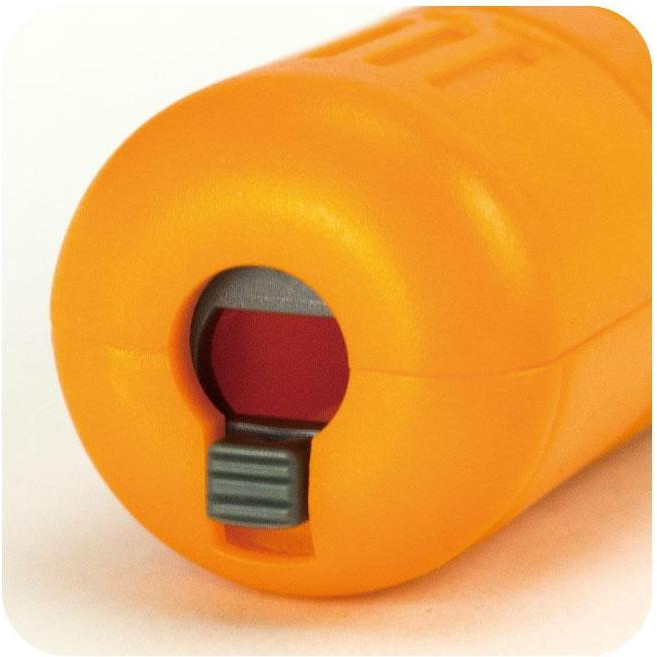 Пенал в рукоятці для змінного ножа-вставки. Регульована потужність забивання.