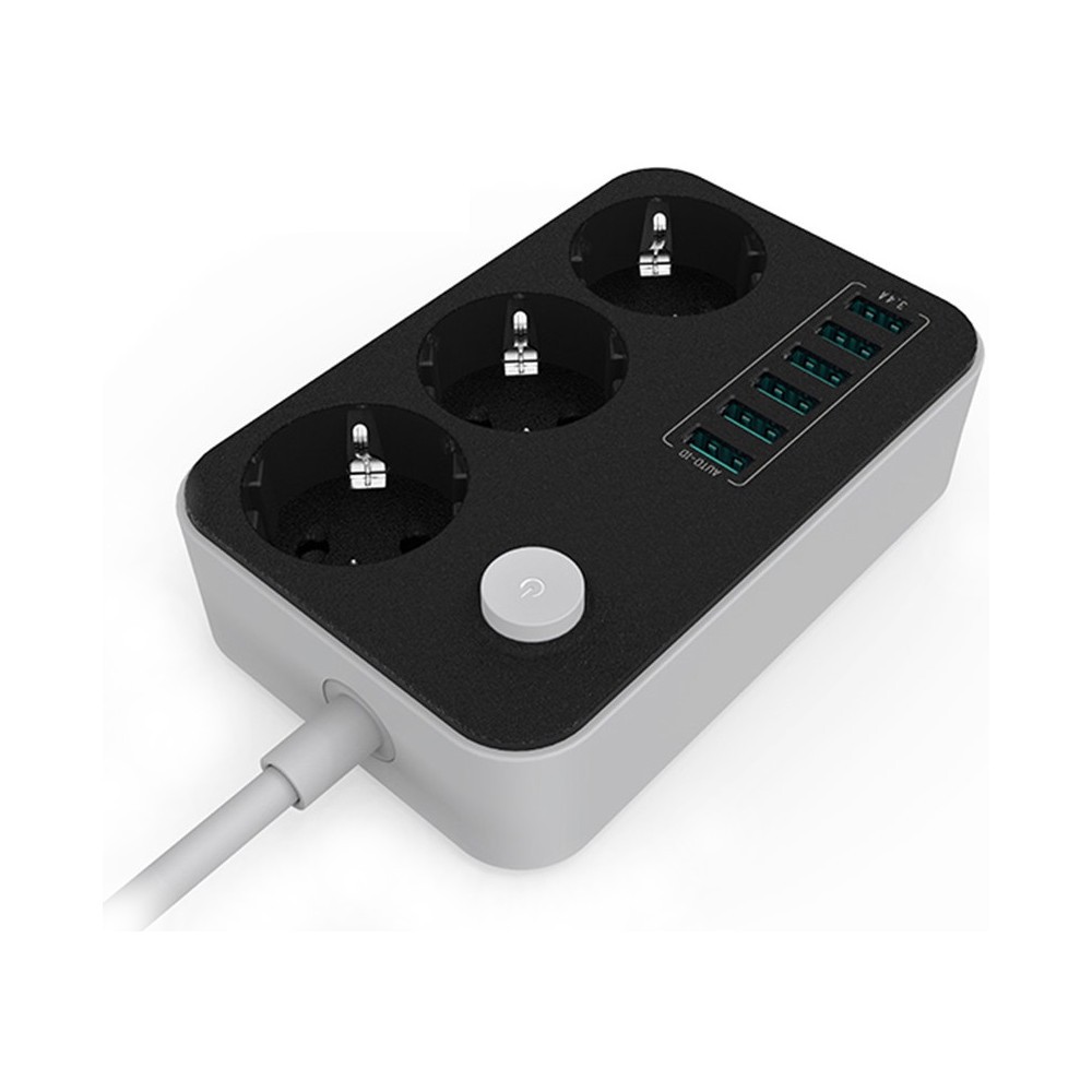 Мережевий фільтр-подовжувач, 1.8м, 3 розетки + 6 USB, ColorWay (CW-CHE36B), чорний