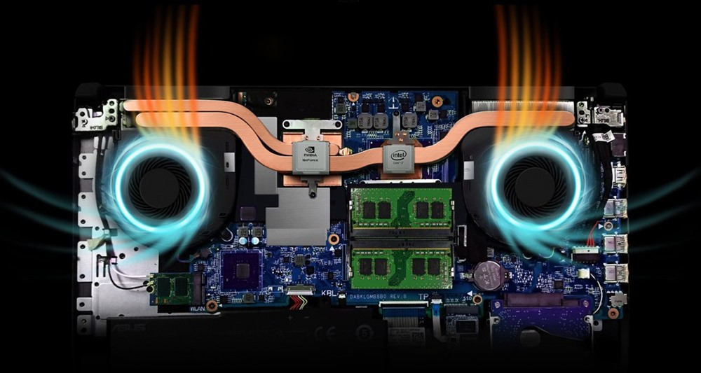 Особлива система охолодження в ноутбуці FX504 забезпечує ефективне відведення тепла навіть під час тривалих ігрових сесій та значно підвищує стабільність та довговічність системи. Технологія HyperCool поєднує в собі систему охолодження із захистом від пилу та функцію Fan Overboost. Система охолодження із захистом від пилу сприяє виведенню забруднюючих частинок з корпусу та перешкоджає їх налипанню на лопатях вентиляторів. Функція Fan Overboost дозволяє регулювати роботу вентиляторів для досягнення оптимального балансу між швидкістю обертання та рівнем шуму. Додаткове відведення тепла забезпечують мідні теплові трубки. Центральний та графічний процесори охолоджуються незалежно. Особлива трапецеїдальна конструкція кришки на 27% підвищує ефективність виведення тепла в порівнянні з традиційною формою корпусу. Один з вентиляторів розташовано безпосередньо під виділеною групою клавіш WASD, тому клавіатура ноутбуку залишається приємно прохолодною навіть під час тривалих ігрових сесій.