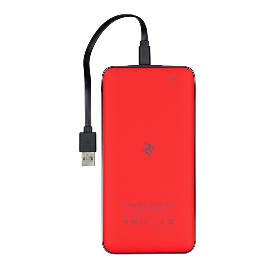 Зовнішній акумулятор PowerBank 2Е 10000мА/ч, DC 5V, out: QC3.0, MicroUSB, Type-C Inp., Soft, red