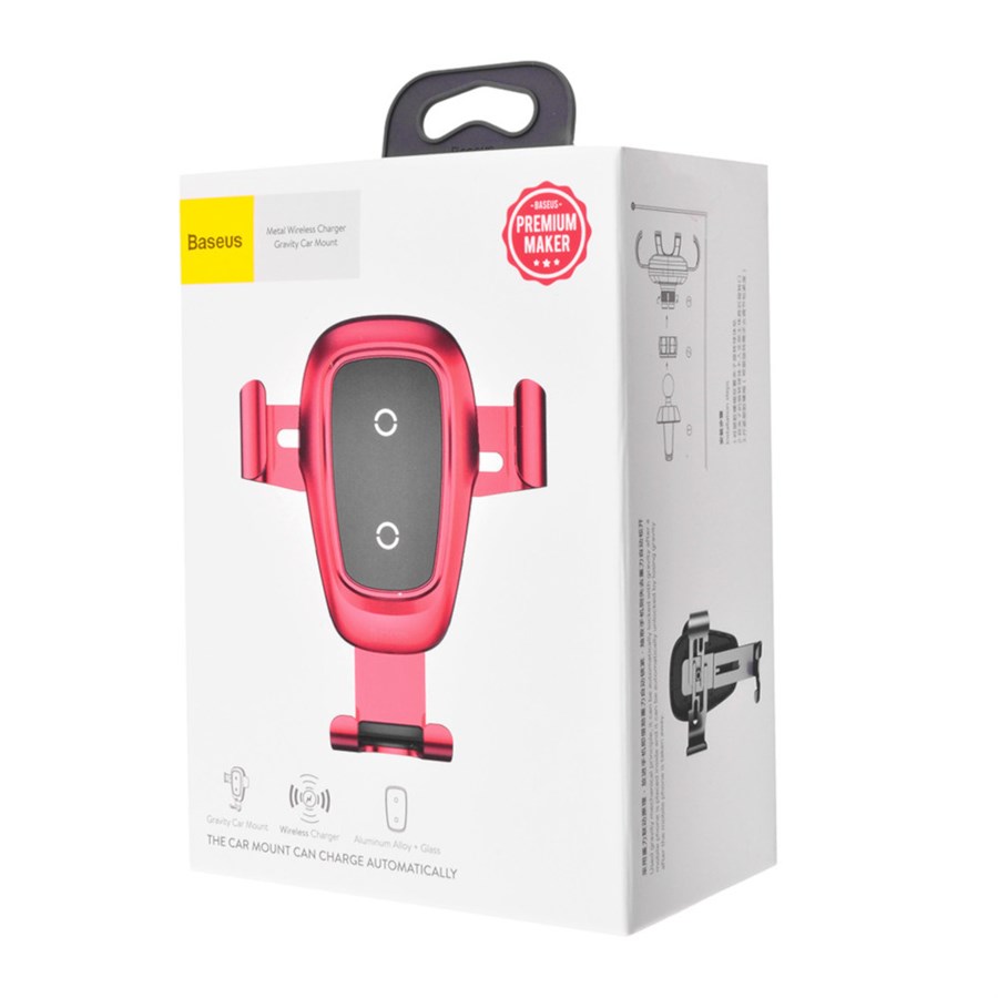 Автотримач + бездротовий зарядний пристрій Baseus Metal Gravity, Red