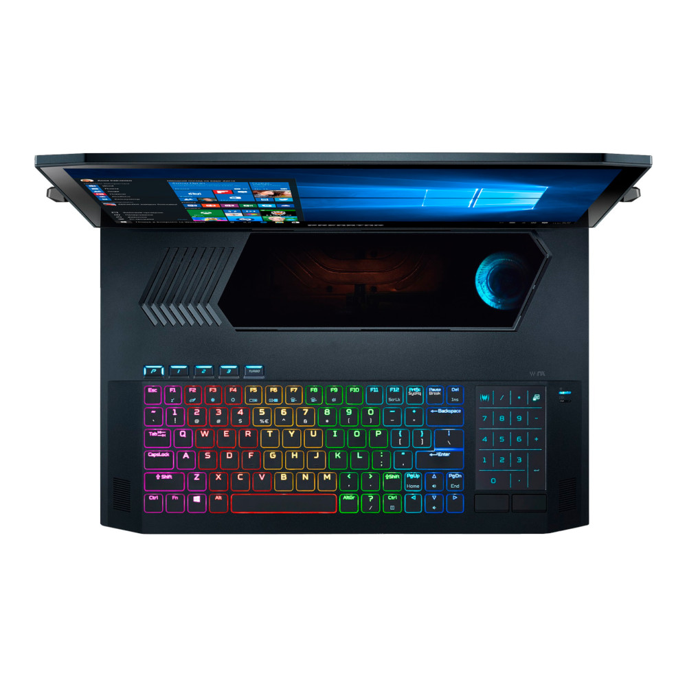 Абсолютний контроль — RGB-підсвічування для клавіш, макроси та можливість перемикання між трекпадом і цифровою клавіатурою. Налаштуйте RGB-підсвічування, миттєво збільшуйте тактову частоту ЦП, натиснувши кнопку Turbo або використавши PredatorSense, відстежуйте стан системи — і це далеко не всі можливості!