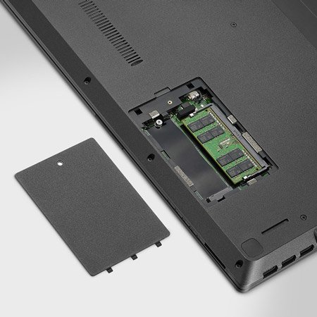На нижній панелі корпусу є зручний сервісний люк, який відкриває доступ до оперативної пам'яті та накопичувачів. Таким чином, користувач може оновлювати або замінювати ці компоненти, не розбираючи весь ноутбук.