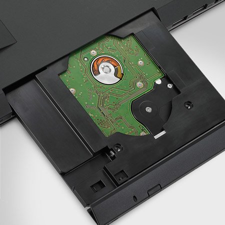 Опціональний контейнер для другого жорсткого диска кріпиться всього одним гвинтом, дозволяючи легко збільшити об’єм пам'яті користувача.