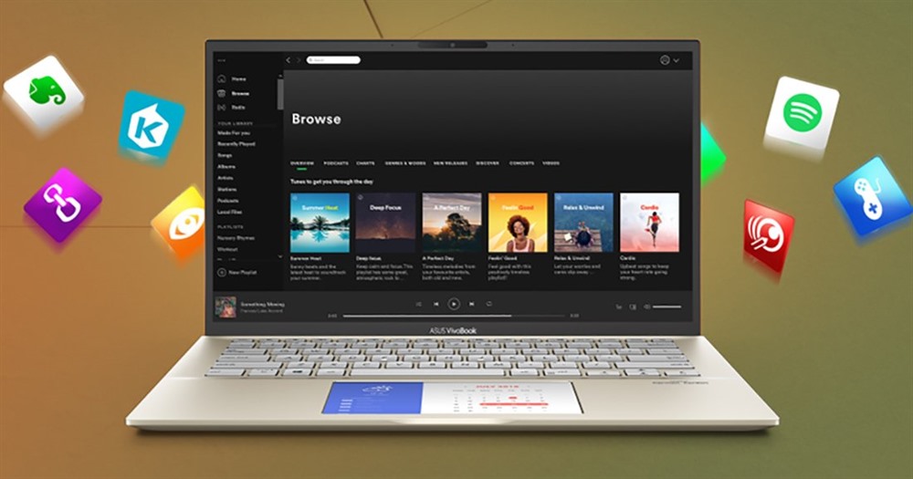 Багато додатків автоматично адаптуються до 5,65-дюймового сенсорного екрана ScreenPad 2.0. Наприклад, Evernote та Spotify чудово працюватимуть на ньому у своїй звичайній версії. Компанія Asus також тісно співпрацює зі сторонніми розробниками, в тому числі відомим виробником додатків для обробки відео Corel, щоб оптимізувати їх проєкти під ScreenPad 2.0. Завдяки такій програмній підтримці ультрабук з дисплеєм ScreenPad 2.0 допоможе вам працювати ще ефективніше!