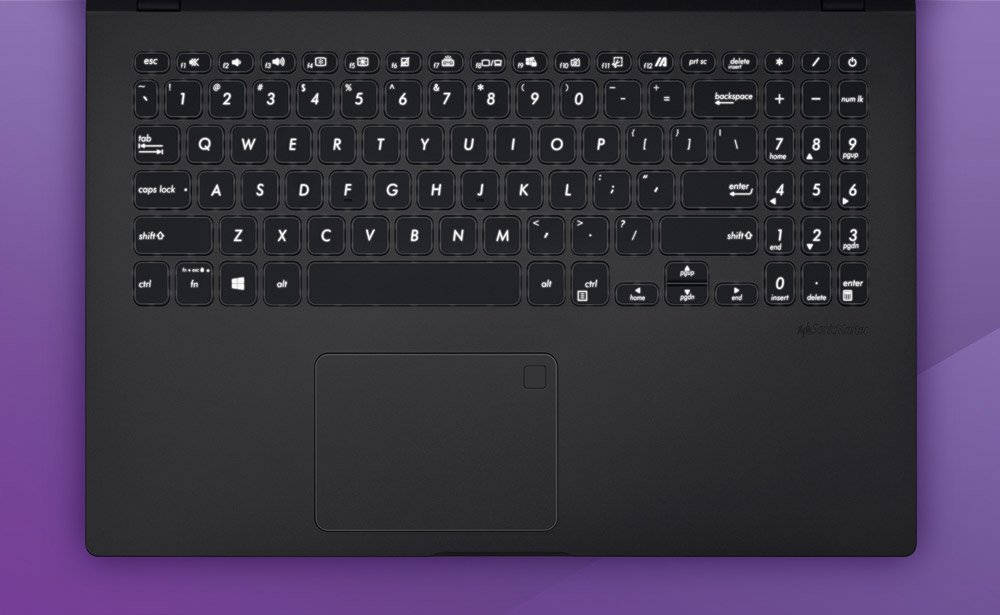 Повнорозмірна клавіатура ноутбука вирізняється продуманою ергономікою, міцною конструкцією та оптимальною глибиною ходу клавіш – 1,4 мм. Крім того, вона може бути наділена підсвічуванням для комфортної роботи у темряві.1