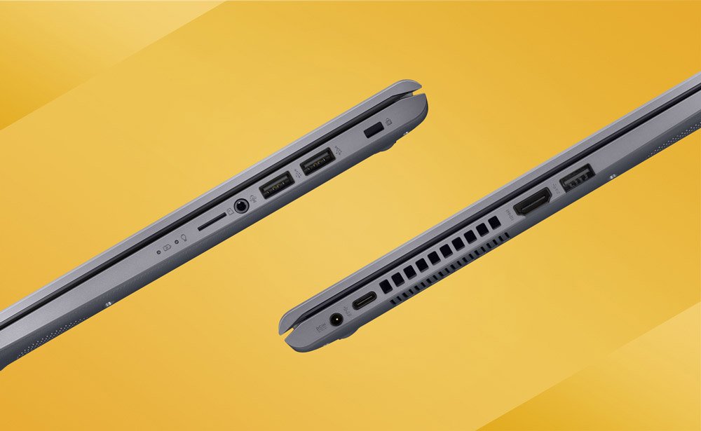 Для швидкого обміну даними з периферійними пристроями Asus X509 пропонує високошвидкісний інтерфейс USB 3.1, виконаний у вигляді зручного оборотного роз'єму Type-C. Його пропускна здатність у 10 разів перевищує можливості USB 2.0.2 Також є роз'єм USB 3.1 Gen1 Type-A, порти USB 2.0 та відеовихід HDMI, який служить для під’єднання зовнішніх моніторів або проєкторів. Крім того, у даного ноутбука є слот для карт пам'яті формату microSD.