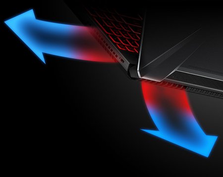 Кожна деталь FX505 продумана до дрібниць, щоб гарантувати його стабільну та ефективну роботу. Так, два вентилятори розташовані симетрично, щоб максимально посилити вентиляцію всередині корпусу. Вони викидають гаряче повітря через задню панель, причому у кришці дисплея зроблений трапецієподібний виріз, щоб та не перекривала вентиляційні отвори. Це просте рішення дозволило підвищити ефективність охолодження на цілих 25% у порівнянні з традиційною конструкцією.