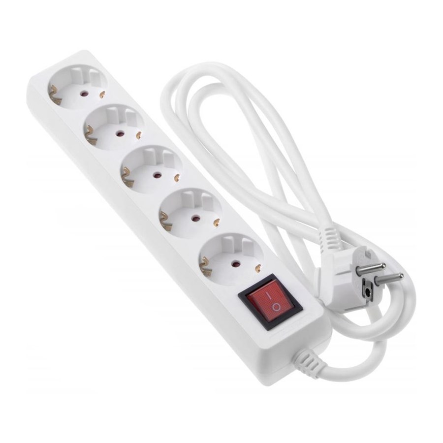 Мережевий фільтр 2Е 5XSchuko з вимикачем, 3G*1.5мм, 1.8м, білий