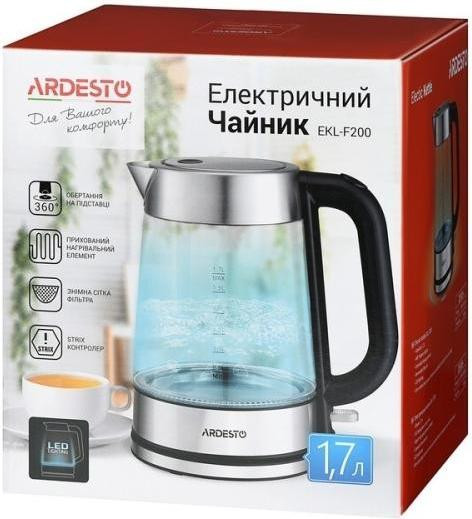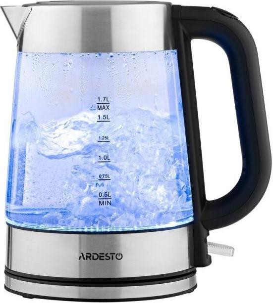Електрочайник Ardesto 1.7л, Strix, скло, сріблясто-чорний