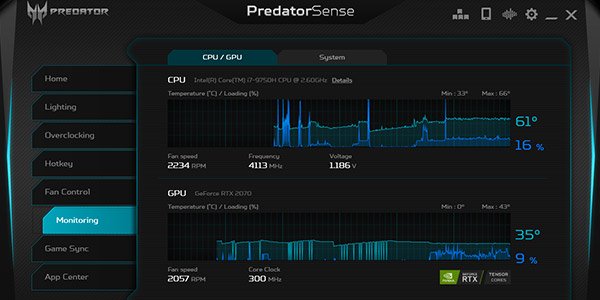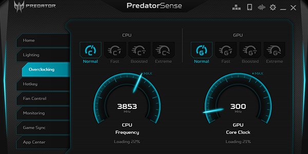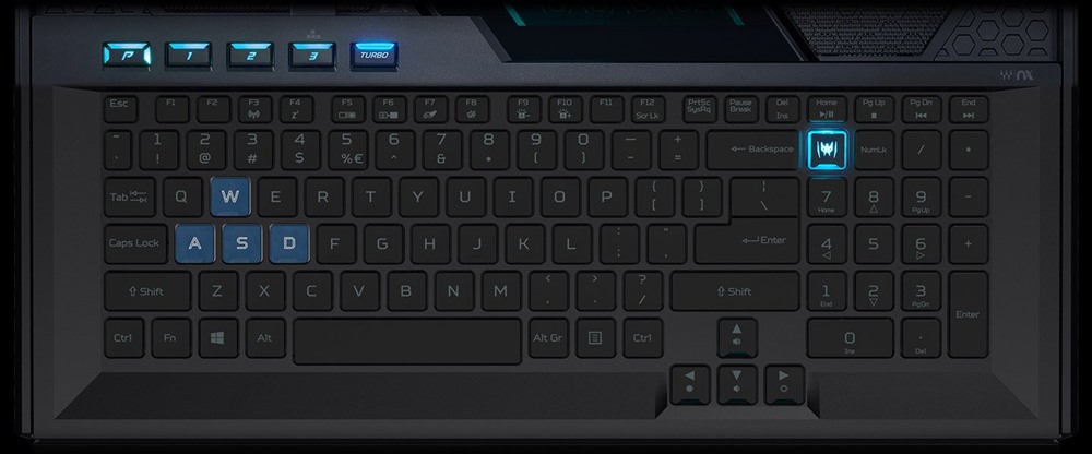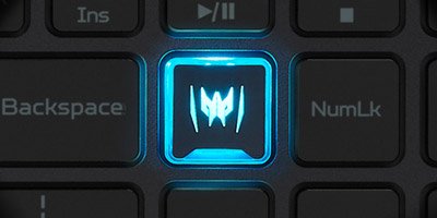 Для технології PredatorSense на клавіатурі виділена клавіша, що дозволяє користувачам відстежувати і налаштовувати параметри безпосередньо у додатку або вмикати оверклокінг натисканням однієї клавіші — Turbo. Використовуйте спеціальні налаштовувані гарячі клавіші для персоналізації системи.