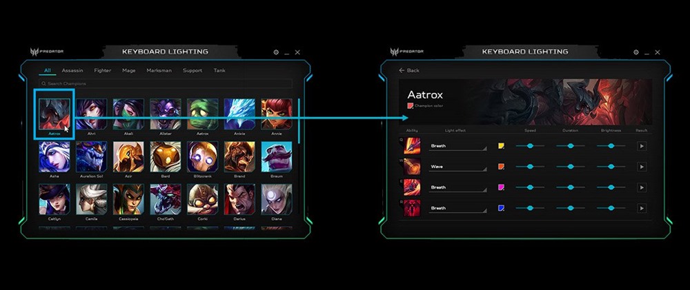 Predator RGB Assault удосконалює ігровий процес, синхронізуючи дії гравця, підсвічування клавіатури та геймплей. Застосування потрібного навички, що викликається клавішею «Q», дублюється підсвічуванням клавіатури. Про активацію НАВИЧКИ ви дізнаєтеся за зміною кольору підсвічування та іншими ознаками.4
