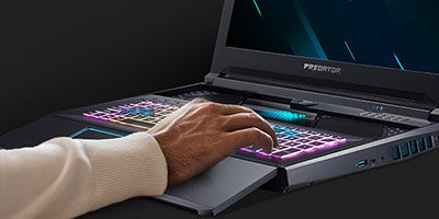 Завдяки висувній клавіатурі Helios 700 досягає свого максимального потенціалу в іграх. При висунутій клавіатурі збільшується повітряний потік, що дозволяє процесору Intel Core i9 9-го покоління та відеокарті GeForce RTX 2080 підвищити робочі частоти і встановити для налаштувань графіки нові значення за замовчуванням — ультрависокі.1