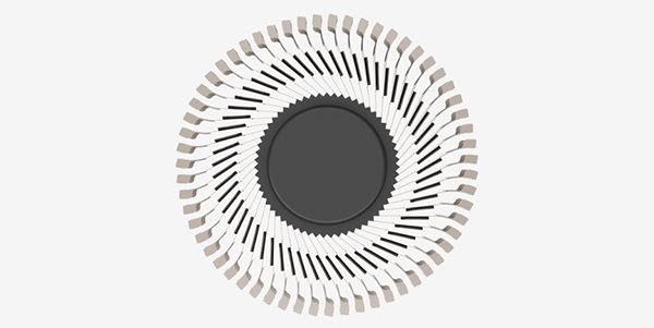 Кожна з 59 біонічних лопатей має товщину всього 0,1 мм, повністю виконана з металу і забезпечена двома стабілізувальними канавками.