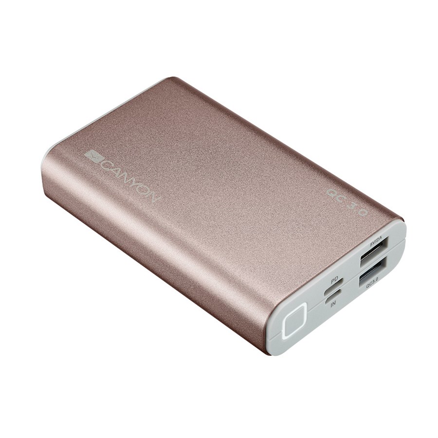 Зовнішній акумулятор Powerbank CANYON CND-TPBQC10RG, 10000 mAh, QC 3.0, Power Delivery, Світло-рожевий (CND-TPBQC10RG)