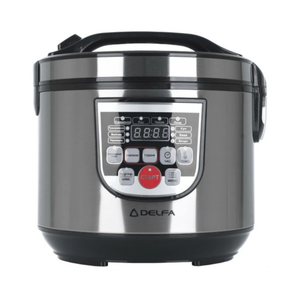 Мультиварка Delfa DMC-500, потужністю 700 Вт, має обєм 4 л і прекрасно підійде для невеликої сімї. Легка 2.7 кг і компактна 280х265х272 мм, вона має привабливий дизайн, тому для неї завжди знайдеться місце на вашій кухні. Електронне управління та дисплей не викличуть труднощів в експлуатації. Мультиварка має 10 основних програм, які допоможуть приготувати різні каші, розсипчастий плов, кекси і булочки, парові страви. Завдяки наявності на кришці ущільнювача і отвору для пари, їжа готується швидше при більш високому тиску. Вас порадує і відкладений старт, адже прийшовши з роботи, ви відразу матимете гарячу смачну вечерю. Зверніть увагу, що в комплектацію мультиварки Delfa DMC-500 входять чаша з антипригарним покриттям, мірна склянка, ємність для парових страв і ложка.
