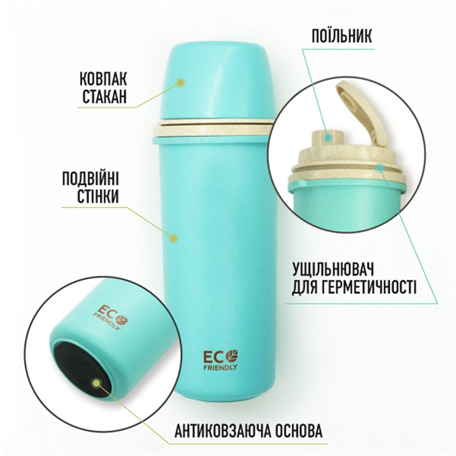 Термобутилка Ecosapiens з екоматеріала, бірюзова 500 мл.