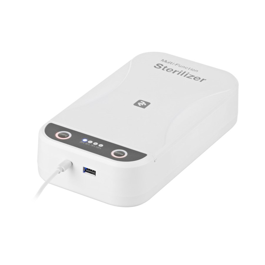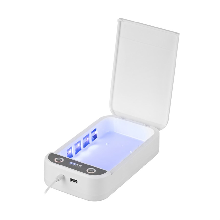 УФ-стерилізатор 2E UVSB030 - компактний стерилізатор для смартфона і інших речей, які ми використовуємо щодня. Вісім випромінювачів ультрафіолетового світла, можливість використання аромамасел. Два режиму дезінфекції. Додатковий USB-вихід для одночасної зарядки інших пристроїв.