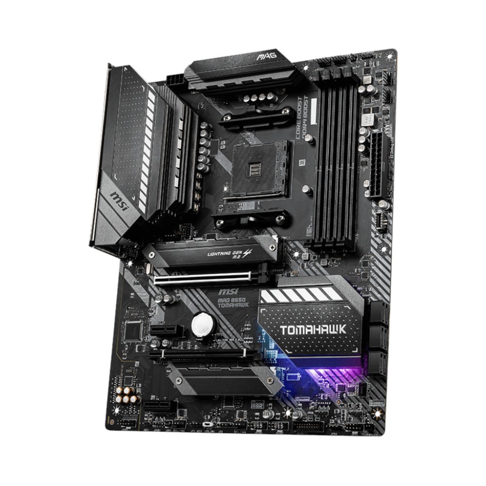 MSI MAG B550 TOMAHAWK - материнська плата формату ATX, створена для процесорів на сокеті AM4. Вона відмінно підійде для складання продуктивних ігрових і робочих систем, де важлива надійність і стабільність. MSI MAG B550 TOMAHAWK має посилену систему живлення, завдяки чому вона здатна забезпечувати роботу багатоядерних процесорів аж до AMD Ryzen 9. Для охолодження всіх компонентів плата оснащена додатковими зональними радіаторами. Оперативної памяті можна встановити сумарним обємом до 128 ГБ в 4 виділених слотах. Підтримуються модулі DDR4 з частотою до 5100 МГц. MSI MAG B550 TOMAHAWK має підтримку PCIe 4.0, що дозволяє збільшити швидкість передачі даних для накопичувачів. Додатковою особливістю моделі є 2 виділених порти Ethernet зі швидкістю роботи до 2,5 Гбіт/с.