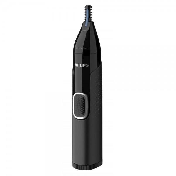 Тример для носа і вух/Тример для бороди і вусів Philips NT5650/16 випускається в сучасному стильному дизайні в строгому чорному кольорі. Чотири насадки, які входять в комплект, дозволяють швидко і якісно видалити небажане волосся з носа і вух, підрівняти брови і контури бороди, вусів і бакенбардів. Леза з нержавіючої сталі є двосторонніми, що дозволяє збривати волоски в носі і вухах під будь-яким кутом в будь-якому напрямку. Система Protective Guard, поміщаючи волосся в ріжучий блок, обмежує контакт лез зі шкірою, роблячи процедуру комфортною та безпечною. Модель виготовлена з ергономічною ручкою з текстурованою поверхнею вологозахисного виконання, тому нею можна користуватися в душі і промивати під струменем води. Тример Philips NT5650/16 живиться від одного елемента типу АА, а зберігається і перевозиться в зручному чохлі.
