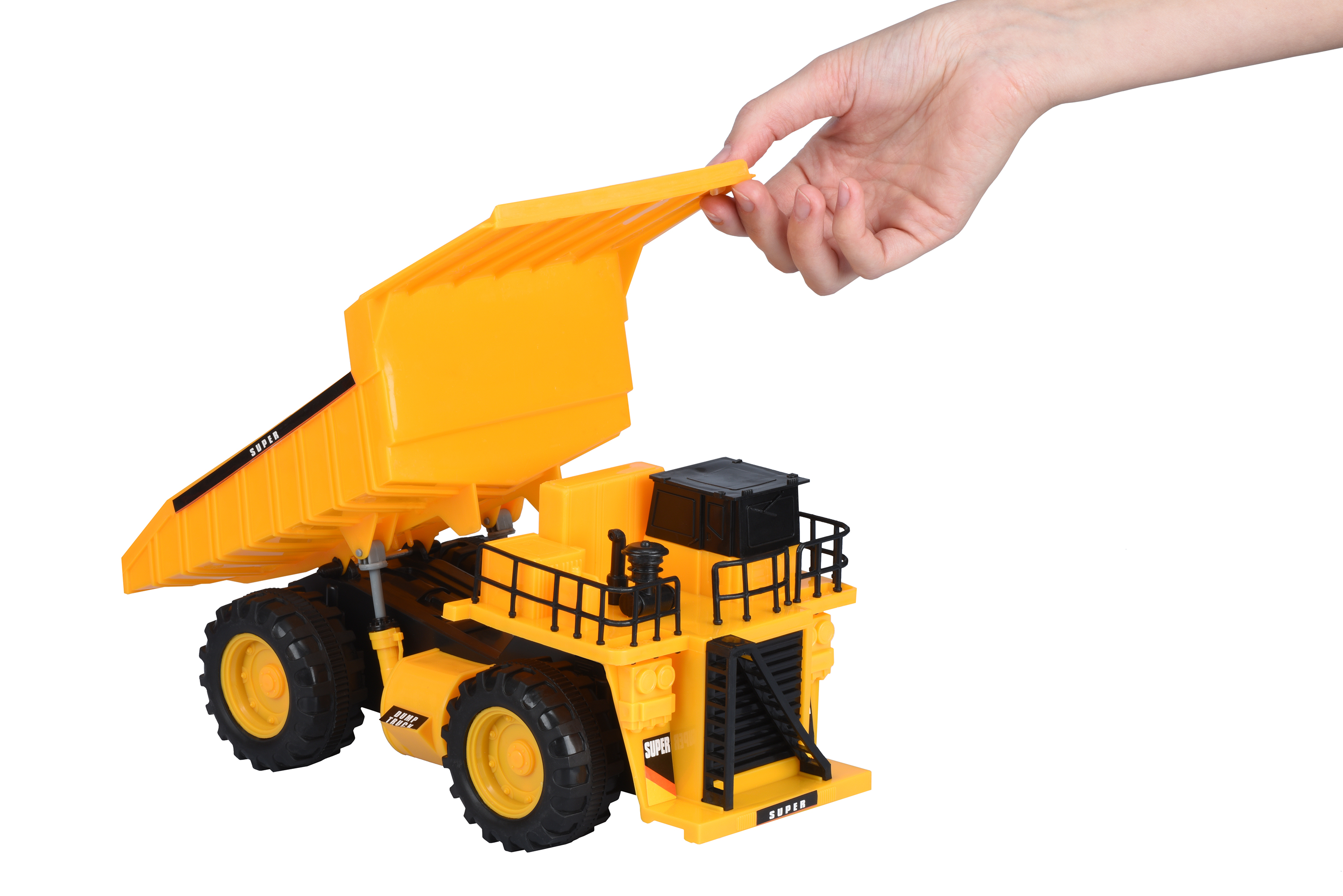 Виробник іграшок Same Toy пропонує дітлахам іграшкову модель найбільшого вантажного автомобіля – кар’єрного самоскида. Хлопчики залюбки гратимуться із іграшковою спецтехнікою, адже виробник максимально точно передав всі деталі. Довжина самоскиду 31 см, його колеса вільно обертаються, а кузов підіймається. Малюнок протектора реального кар’єрного самоскиду відтворений на іграшковій моделі. Передня частина вантажівки містить багато дрібних деталей, що повністю відповідають гіганту у реальності. Іграшкова спецтехніка допоможе дізнатись про особливості машин, їх відмінності та призначення. Сюжетно-рольові ігри з машинами розвиватимуть дрібну моторику, комунікаційні навички та мислення. Іграшка вироблена із міцної пластмаси, тому стійка до ударів. Для дітей від 3-х років.