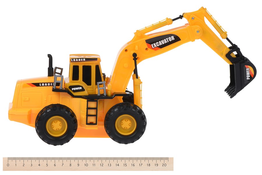 Яскравий та функціональний трактор із ковшем від Same Toy. Дизайн трактора вразить дітлахів своєю схожістю із дизайном справжнього трактора. Його колеса вільно обертаються, ківш легко підіймається та опускається. Гума на колесах має тракторну поверхню, що дозволить з легкістю проїжджати по піску або камінню. Дітлахи дізнаються, як працює така спецтехніка і що ця модель призначена для землерийних або дорожньо-будівельних робіт. Збери всю колекцію спецтехніки та побудуй власну інфраструктуру. Ковш вироблений із міцного пластику, тому стійкий до ударів. Його довжина 33 см. Для дітей від 3-х років.