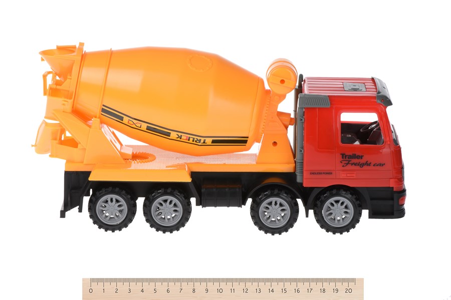 Дитина проведе час весело та з користю разом з великими вантажівками від виробника іграшок Same Toy! У набір входить бетонозмішувач із причепом, на якому встановлений трактор. Загальна довжина – 62 см. Причеп від’єднується, трактором можна гратись окремо. Механізмами бетонозмішувача і трактора можна керувати вручну. Вантажівка із червоною кабіною, із інерційним механізмом руху – така іграшка чудово розвиватиме велику і дрібну моторику. Шість пар колес і міцна конструкція – дозволяють гратись зі спецтехнікою у пісочниці. Штовхніть машину вперед або назад – і вона деякий час їхатиме самостійно. Така іграшка допоможе пізнати оточуючий світ, отримати знання про особливості спецтехніки та її призначення. Зі спецтехнікою існує набагато більше варіантів сюжетно-рольових ігор. Рекомендований вік: 3+