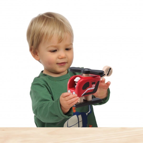 Яскравий вертоліт таїландського виробника іграшок Wonderworld. Транспорт повністю виготовлений із деревини – нетоксичного безпечного матеріалу. Він гладенько відшліфований, без зазубрин, завдяки чому до іграшки приємно торкатись. Виріб для дітей від 18 місяців. Іграшка розміром 6 х 16 х 10 см.