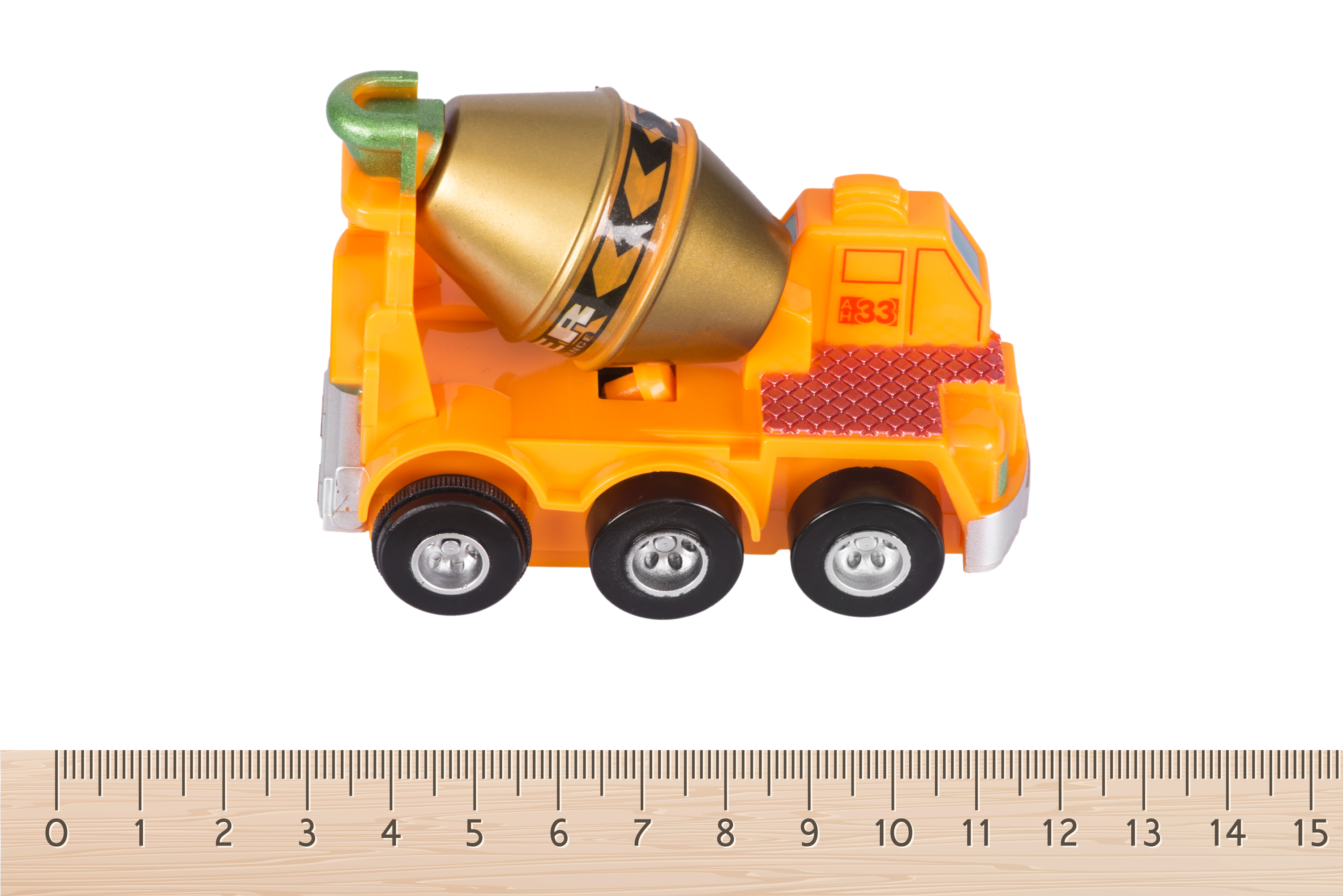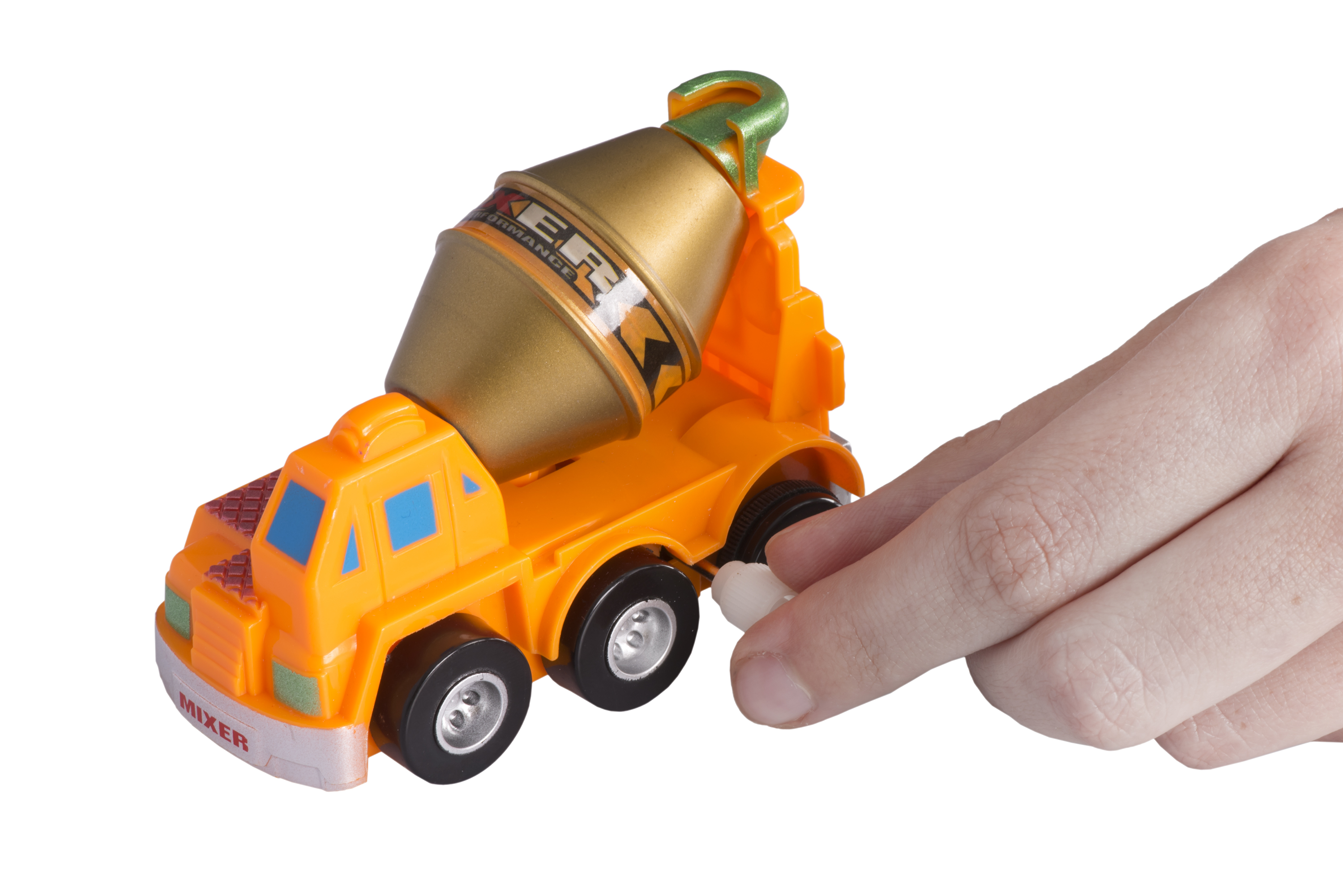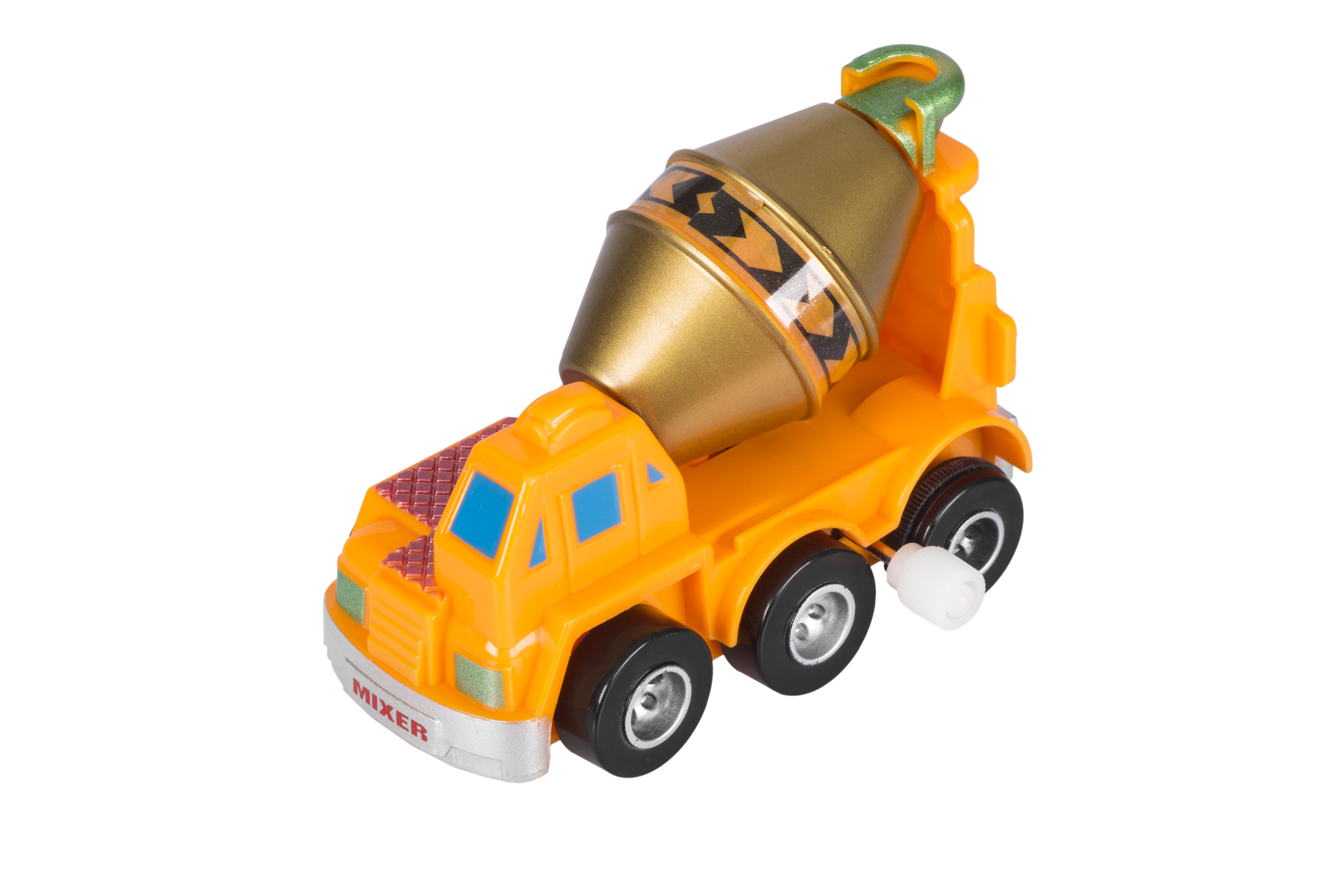 Заводна оранжева машинка-бетономішалка неодмінно сподобається дітям. Бетономішалка приводиться до руху завдяки заводному механізму. Виріб пластиковий; матеріал безпечний, нетоксичний, при цьому міцний, втримає найактивнішу експлуатацію. Іграшка призначена для дітей від чотирьох років. Виробник – німецький бренд іграшок goki. Розміри машинки – 9 х 6 x 5 см.