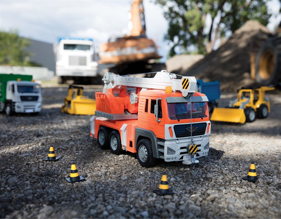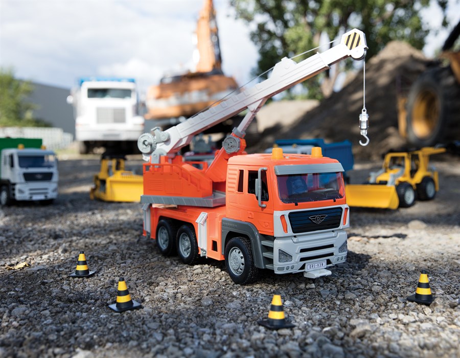 Дитячі іграшки Driven копіюють моделі справжніх машин. Автокран Driven серії Standard виконаний з легкої, міцної, якісної пластмаси. Головна особливість - багатофункціональність: двері відкриваються, гак висувається, кран рухається вгору і вниз, платформа обертається, кабіна відкидається, щоб показати двигун, опорні стійки висуваються. Машинка має м'які гумові шини, а також реалістичні вогні і звуки.
