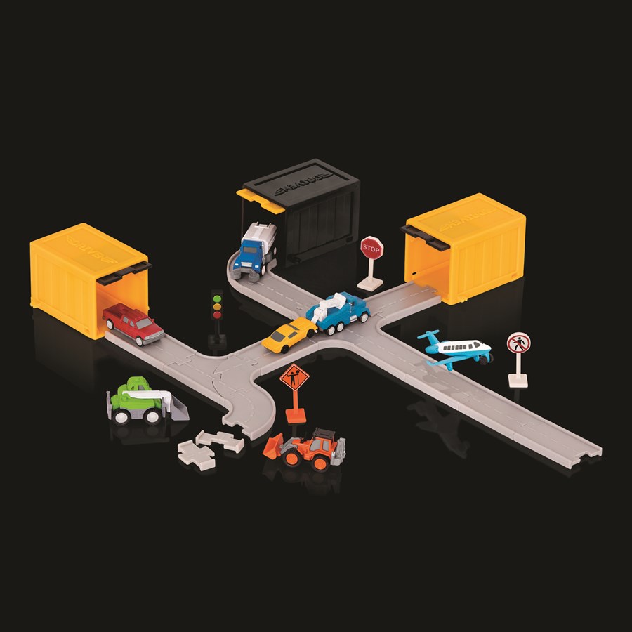 Містить три складальні елементи дороги або дорожні знаки, Повна колекція 21 вид транспорту