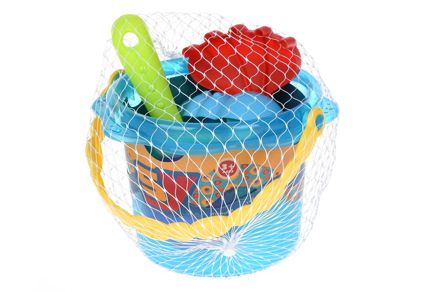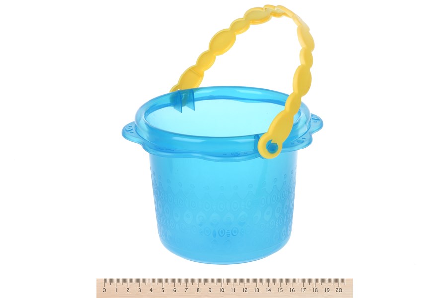 Набір із синім відерцем – цікава забавка для ігор у пісочниці, а також всюди, де є пісок: а пляжі, на подвір’ї і т.д. У комплекті відерце (його розмір 13х18 см), а також лійка, інструменти і формочки. Усі деталі пластикові. Матеріал міцний, якісний, нетоксичний.