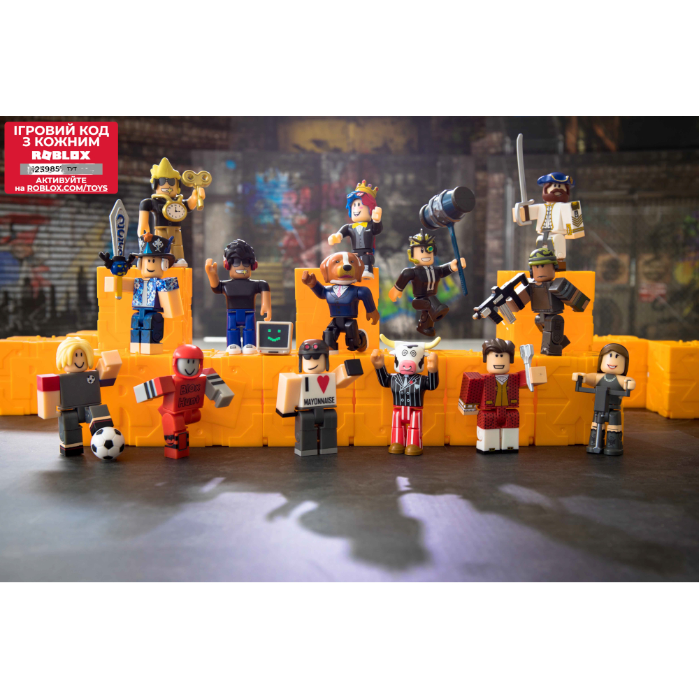 Повністю закрита упаковка, вміст приховано. Зовні коробка має вилиту букву (одна з 6-ти, що утворюють слово ROBLOX). Всередині знаходиться фігурка сюрприз (одна з 24-х можливих із серії Mysteru Figures 5 Series) .Коробочкі можна використовувати для різноманітності гри, будуючи різні конструкції, або викладати з них різні слова-слогани. Кожна фігурка продається окремо і поставляється з ексклюзивним кодом віртуального елемента. Фігурки мають взаємозамінні частини і аксесуари, які можна змішувати і створювати унікальних персонажів з вашої колекції.