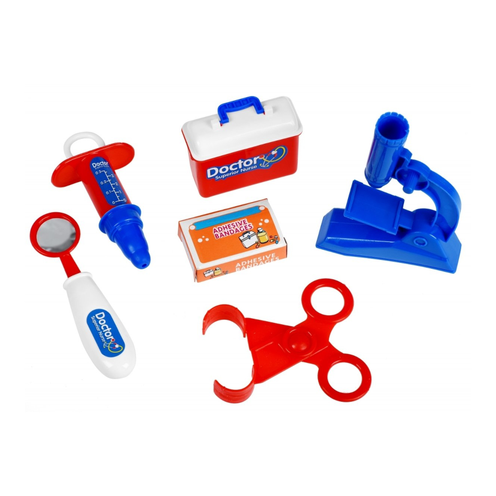 Кожна дитина обожнює піклуватись за своїми ляльками та іграшками, саме тому виробник Same Toy створив для них яскравий набір для гри у лікарню. У блакитному кейсі діти знайдуть такі незамінні для кожного лікаря медичні інструменти, серед яких: стетоскоп, шприц, окуляри, мікроскоп, пінцет, стоматологічне дзеркало, затискач, ліки, аптечка, картка пацієнта та інше. Набір оформлений у вигляді пластикового кейсу, з яким лікарю буде зручно відвідувати своїх пацієнтів. Усі елементи безпечні та вироблені із міцного пластику у блакитних, червоних і жовтих кольорах. Розміри набору: 26,5 х 24 х 5,5 см. Для дітей від 3-х років.