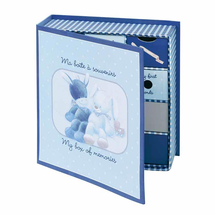 Батьківська скарбничка серії «Алекс та Бібу» від бельгійського виробника Nattou. Яскрава коробочка для скарбів допоможе батькам зберегти безцінні для себе предмети їх малюка: першу пустушку, перший зубик, перше пасмо волосся або будь-що інше, що нагадуватиме батькам про перші роки життя малюка. Коробочка для збереження пам’ятних речей вироблена із міцного картону у блакитних кольорах. Її розміри: 25 x 26 x 9 см. Такий набір – ідеальний подарунок молодим батькам.