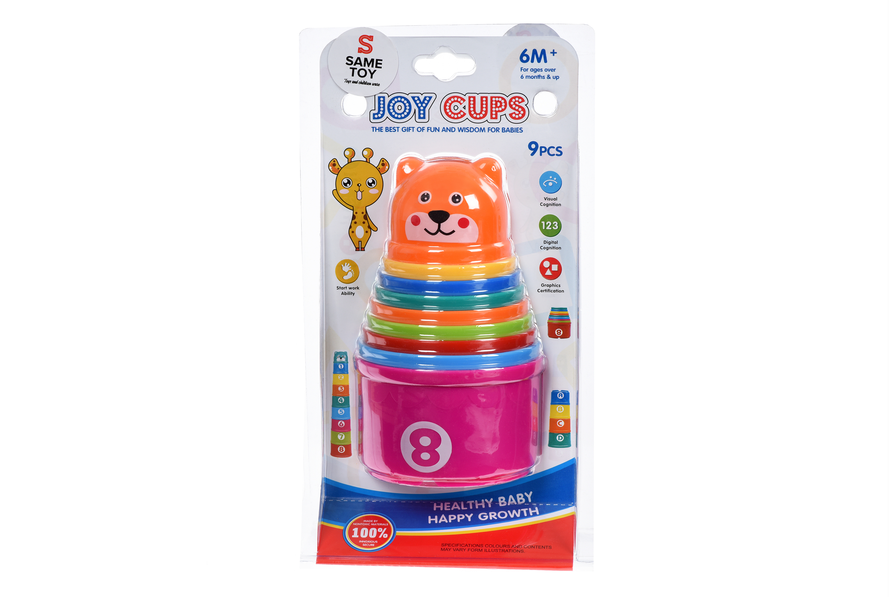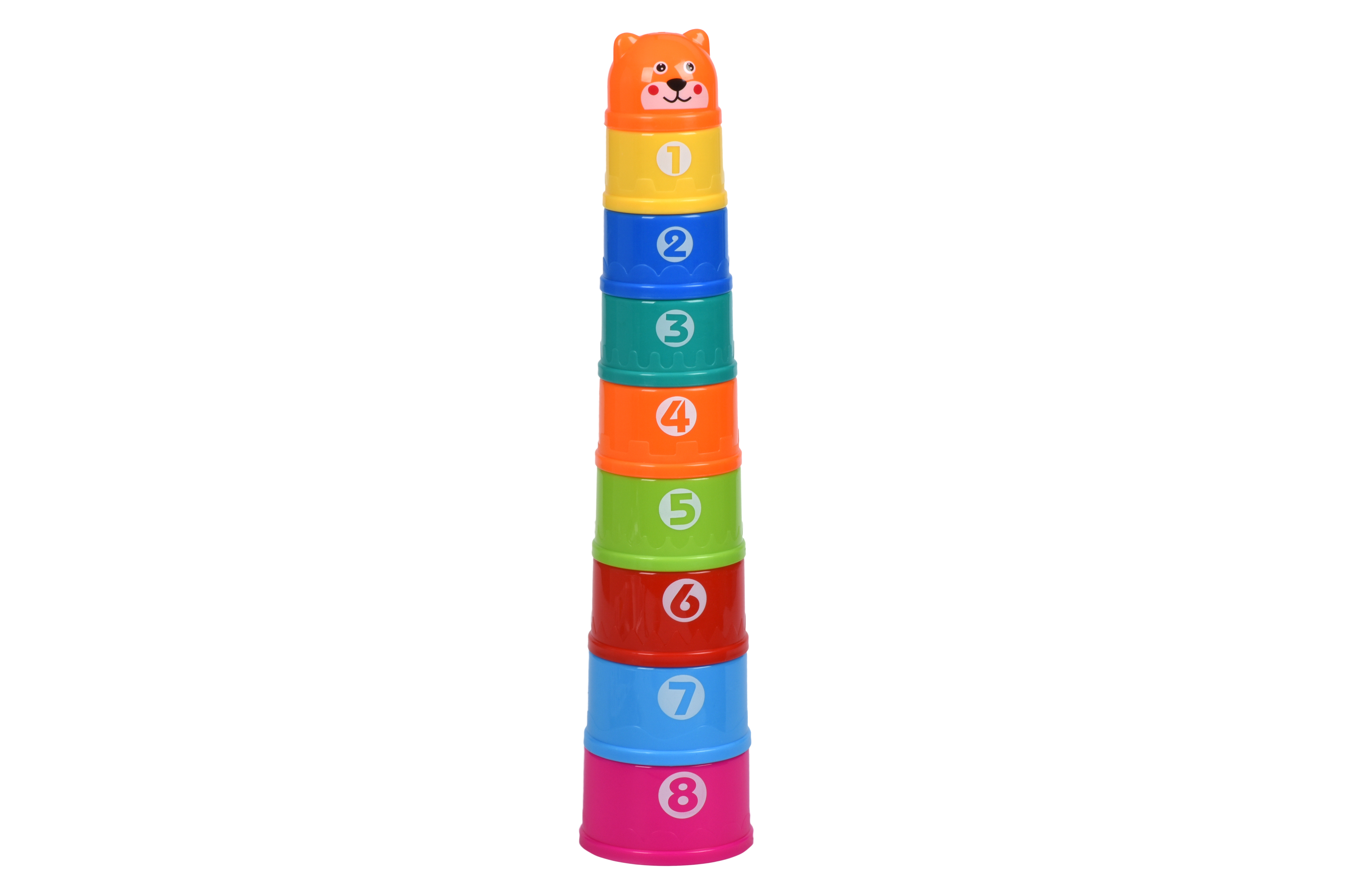 Здоровий і щасливий розвиток починається з перших дитячих пасочок. Набір яскравий та багатофункціональний: пасочки, чашечки, пірамідка, конструктор, алфавіт та цифри – все це є в одному наборі від Same Toy. Кожна пасочка відрізняється кольором, фактурним візерунком обода, літерою та цифрою. Дітки вивчать латинські літери від A до H та цифри від 1 до 8. Дев’ята пасочка – це і вершина пірамідки у вигляді голови тваринки. Матеріал набору – міцний глянсовий пластик, нетоксичний і абсолютно безпечний для здоров’я. Для дітей від 6-ти місяців.