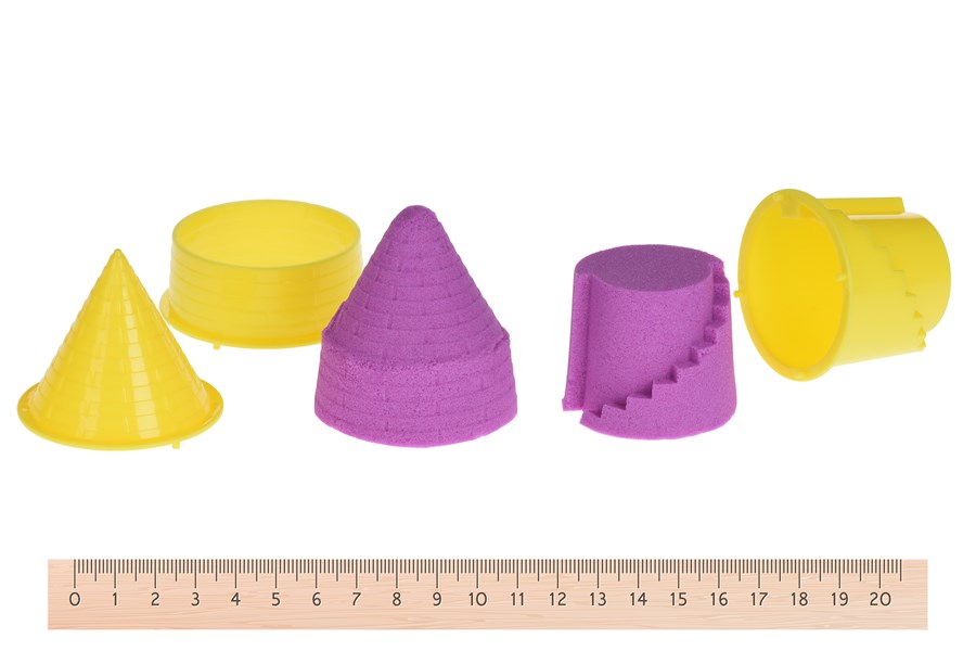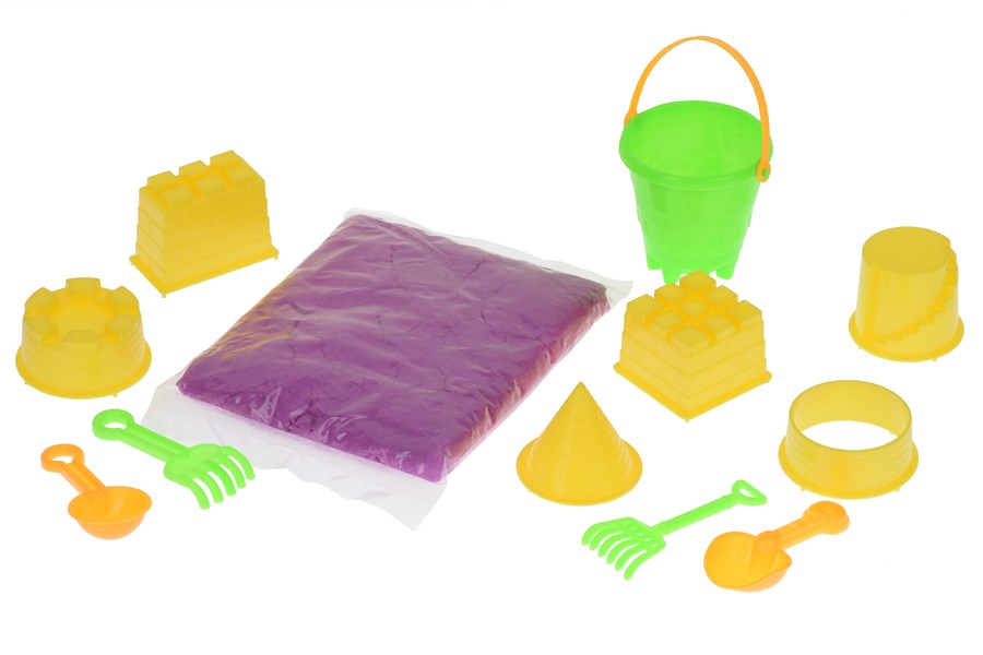 Кінетичний піску бузкового кольору у зручному пластиковому контейнері. В наборі є допоміжні фігурки та інструменти. Пісок достатньо еластичний і приємний на дотик. Кінетичний пісок протягом усього часу використання зберігає первинні властивості завдяки в’язкому, абсолютно безпечному, нетоксичному агенту, що входить до складу. З допомогою такого незвичайного матеріалу дитина зануриться у креативну гру і зможе втілити всі фантазії, створюючи неймовірні фігурки. Очистити деталі від піску можна чистою водою або вологою тканиною. Для дітей від трьох років.