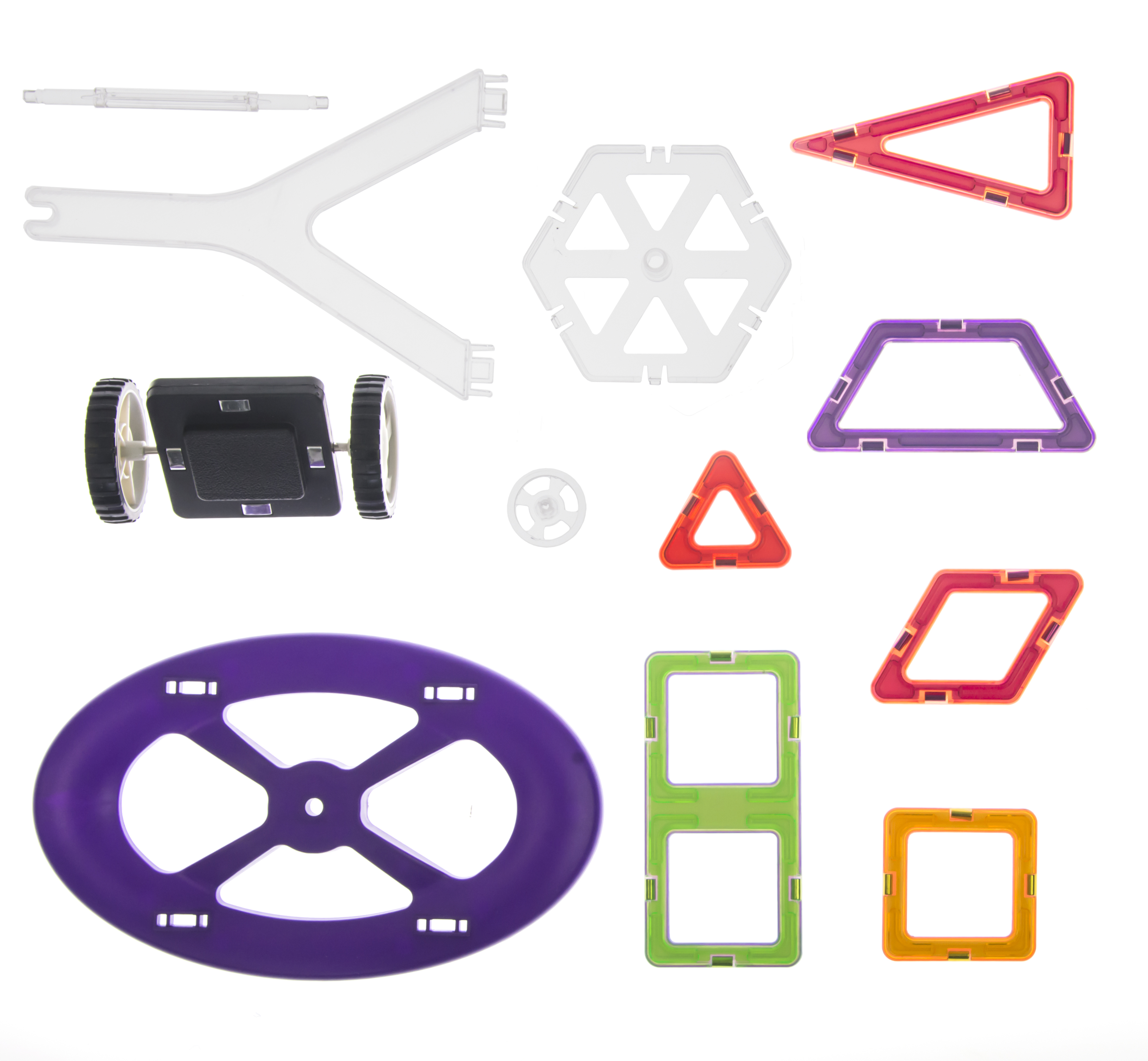 MagPlayer - магнітний конструктор, для розвитку творчості, мислення і моторики рук. Цей великий набір складається з 88 різних деталей - трикутників, квадратів, гексагонів, трапецій, ромбів і декількох механізмів. Він дозволить зібрати необмежену кількість різних фігур, будівель, механізмів і навіть іграшкових машин. У кожного елемента є магнітні кріплення, які забезпечують надійну і міцну фіксацію.