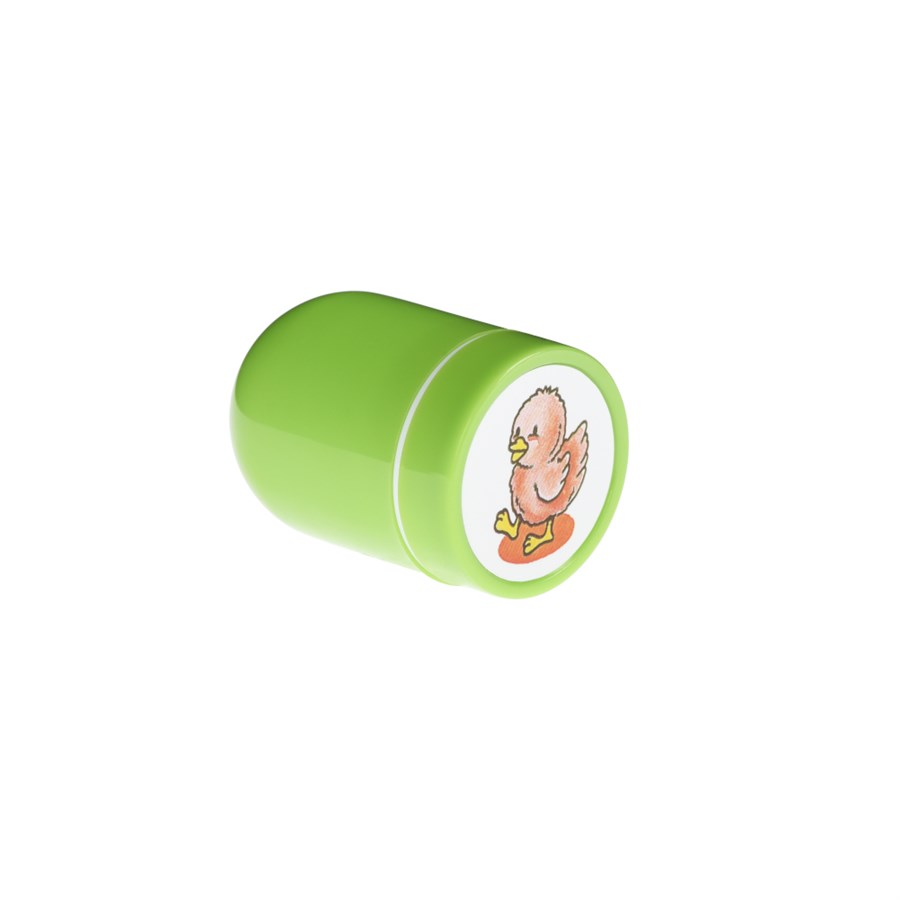 Штамп із зображенням курчати – для різноманітних ігор, аплікацій, витворів. Цікавий виріб додасть дитячим малюнкам унікальності і неповторності. Штамп можна перебивати на папір, картон, і навіть на руку. Розмір штампа 2,9х4,4 см. Штамп в оболонці зеленого кольору, малюнок, що перебивається – також зеленого. Фарба штампу безпечна і нетоксична. Для дітей від 3 років.