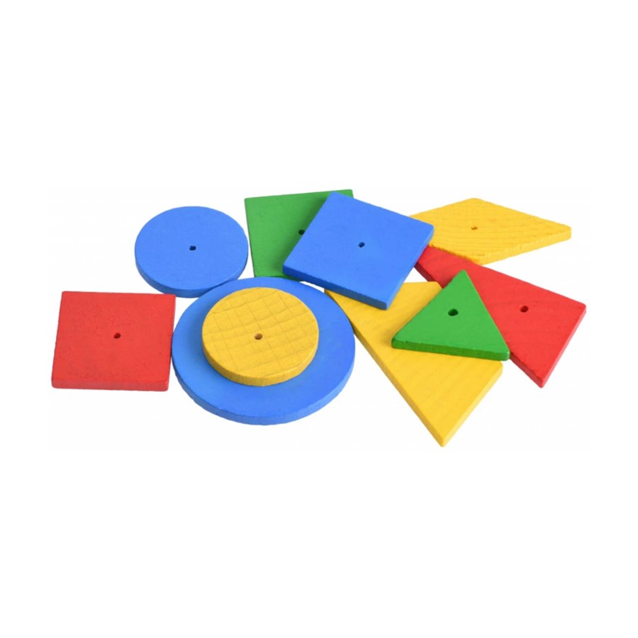 пробкова дощечка, металеві цвяхи, дерев'яний молоток, 30 різнокольорових дерев'яних фігур