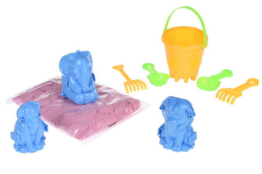 Кінетичний пісок – сучасний матеріал для творчості, який допоможе дитині розвинути безліч корисних навичок і вповні проявити фантазію і талант. Пісок еластичний, в’язкий, з нього можна зліпити неймовірні витвори. Не бруднить руки і не висихає. Матеріал безпечний, нетоксичний і не заподіє шкоди здоров’ю. У наборі 500 г піску блідо-рожевого кольору, а також форми та інструменти для ліплення. Очистити деталі від піску можна чистою водою або вологою тканиною. Набір для дітей, віком від трьох років.
