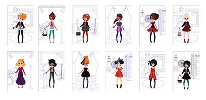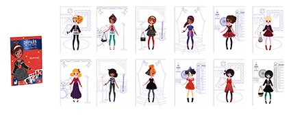 Креативна книга Rock'n'roll fashion show від французького бренду JANOD - це безліч креативних розваг для маленьких меломанів і костюмів, характерних для слухачів різних жанрів, в тому числі джаз, твіст чи диско. Паперова книга містить 4 сторінки, повні наліпок з предметами одягу, серед них кілька наклейок з мерехтливої ​​фольги і одна сторона наклейок з аксесуарами. Крім того, фони на кожній сторінці з персонажами можуть бути пофарбовані відповідно до вашими власними ідеями, тому що вони містять тільки контури місць, клубів або вулиць. Блокнот має невеликий формат, з ним зручно як вдома, так і в дорозі.