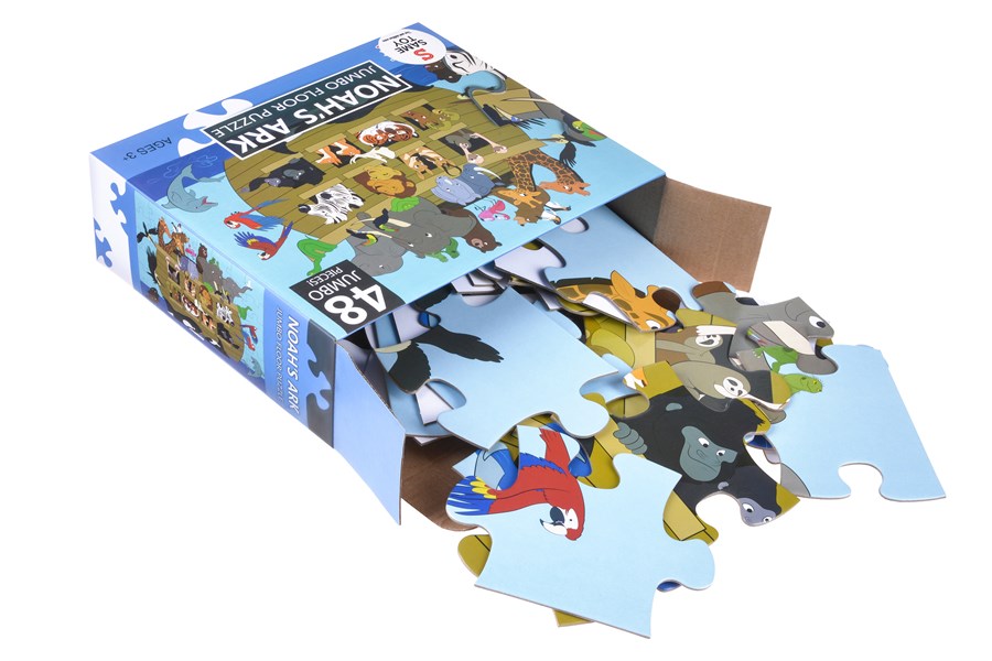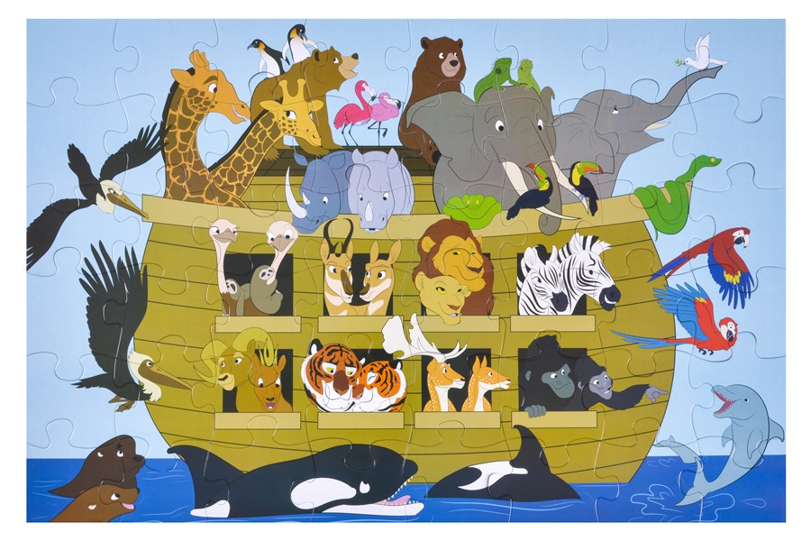 Дитячий пазл «Ноїв ковчег» зображує відому біблійну сцену - безліч тварин пливуть на великому кораблі, який побудував Ной. Картина складається з 48 елементів. Всі деталі пазла великі, що робить їх зручними для дитячих ручок. Біблійний сюжет і добра картинка спонукають дитину краще познайомитися з повчальною історією про Ноя. При складанні пазла дитина тренує такі важливі навички, як моторика рук, просторове мислення, уважність і пам'ять. Розмір зібраної картинки: 60х90 см.