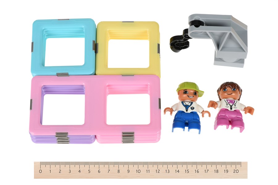 Конструктор Magplayer – набір намагнічених деталей. Особливість конструктора у тому, що для складання не потрібно жодних допоміжних елементів. Усі деталі по периметру мають спеціальні магніти, завдяки яким кріпляться один до одного. Набір із 68 деталей призначений для дітей від 3 років. За допомогою елементів з набору можна сконструювати різноманітні моделі, фігури, наприклад, ракету, автомобіль або екскаватор, як показано на упаковці контейнеру.