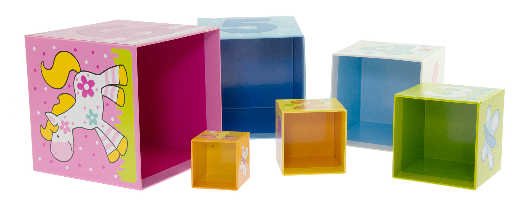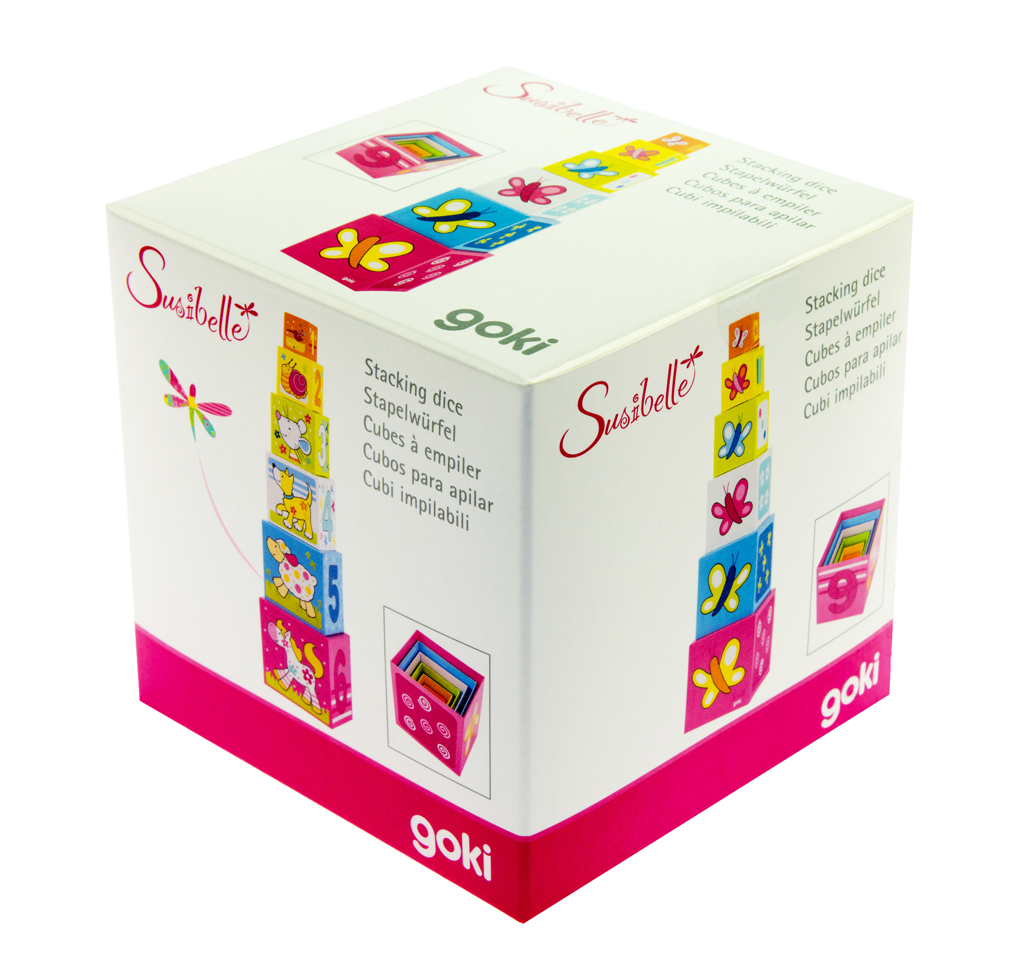Кубики «Вчимося рахувати» німецького виробника іграшок goki зроблені із міцного картону, вкритого кольоровими фарбами на водній основі. Кубики дозволять тренувати моторику та спритність. Грати ними можна різноманітними способами: будуючи вежу від найбільшого до меншого або ж складаючи один кубик в інший від найменшого до більшого. Всього в комплекті 6 кольорових кубиків, а загальна висота вежі може сягати 57 см. Грані кубиків прикрашені різноманітними малюнками: цифрами, візерунками, тваринами. Така гра допоможе дитині вчитись рахувати, вивчати різновиди тварин, відчувати баланс та бути акуратним.
