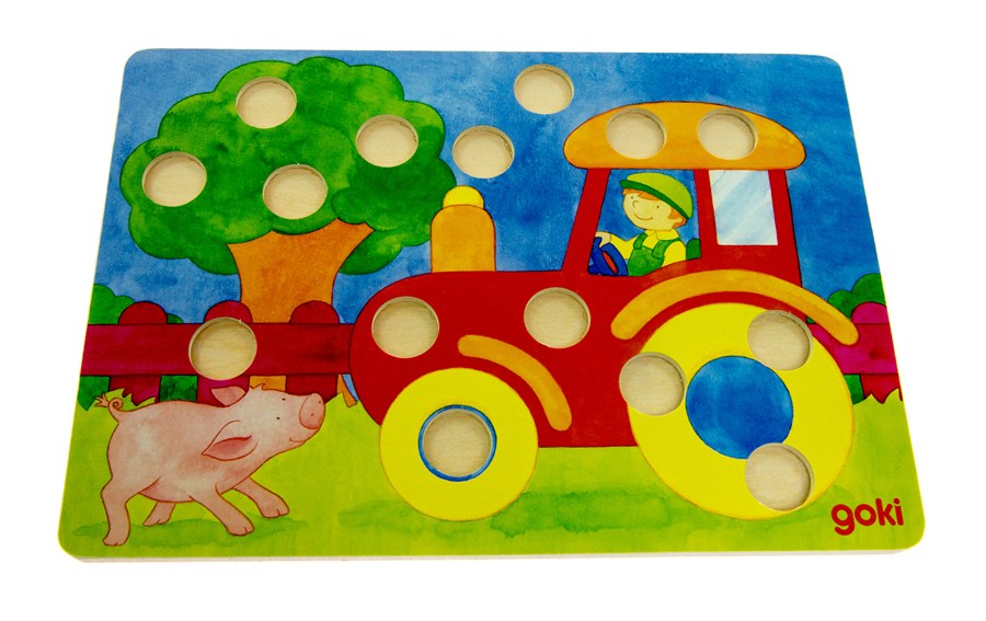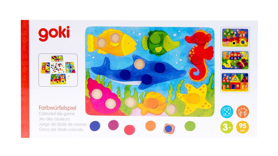 Дерев’яна настільна гра лото «Різнокольоровий світ» німецького виробника іграшок goki. Комплект постачається у якісній фірмовій упаковці, вона міцна та довго служитиме. До комплекту гри входить: 4 ігрових дошки, 90 різнокольорових циліндрів та гральний кубик. Всі деталі виготовлені із натурального дерева, вкритого різнокольоровими фарбами на водній основі. Мета гри – якнайшвидше закрити отвори свого ігрового поля відповідним кольором циліндрів. Матеріали, що входять у комплект лото, виготовляються виключно з натуральної сировини і є абсолютно безпечними для дітей.