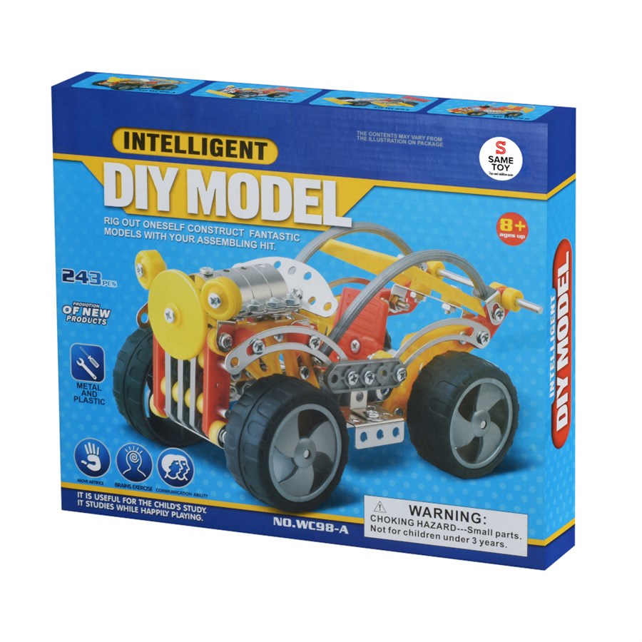 Безмежний світ конструкцій відкривається разом з розвиваючим набором від Same Toy. Комплект дозволить дитині побудувати великий фантастичний автомобіль, джип або будь-що, на що спроможна дитяча фантазія! Із таким набором дітлахи залюбки гратимуть у сюжетно-рольові ігри, зокрема про транспорт. Набір складається із металевих і пластикових деталей, поєднуються за допомогою гвинтів та гайок. У комплект входить інструкція зі схемою, а серед 243 деталей є викрутка і гайковий ключ для зручності та надійності кріплення. Такий конструктор розвиватиме у дітей дрібну моторику, логіку, уяву та комунікаційні навички. Рекомендовано дітям від 8-ми років.
