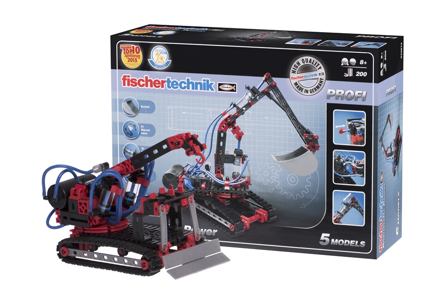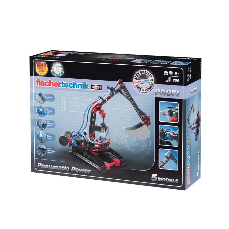 Розвиваючий набір «Пневматика Profi» на 200 деталей німецького виробника fischertechnik. Комплект дає можливість побудувати: екскаватор, рятувальний кран, цеховий кран, штампувальну машину, діючу модель. Набір містить чітку та зрозумілу інструкцію із прикладами складання моделей. Деталі вироблені із якісного і міцного пластику. Кольори деталей: чорний, сірий, червоний та блакитний. Деталі мають різноманітну форму, серед них є і мініатюрні технічні деталі. Принцип їх роботи відповідає роботі справжніх систем. Спосіб поєднання деталей відрізняється від LEGO - тут елементи оснащені шипами трапецієвидної форми, а також спеціальними жолобами. Завдяки їм деталі просто і надійно поєднуються, та легко – роз’єднуються. Професійний рівень набору підходить дітям від 8-ми років, але буде цікавий і дорослим. Розвиваючий комплект постачається у фірмовій упаковці, її розміри – 32,5х23,5х8 см.